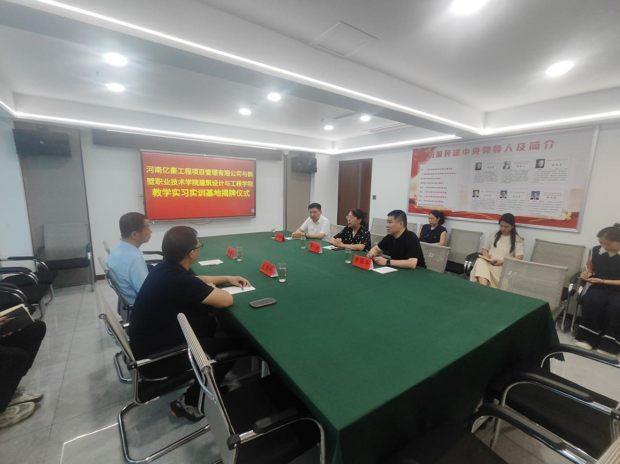 揭牌仪式上,公司经理强调,实训基地的建立是落实应用型人才培养目标的重要举措,将为员工提供真实工程场景的实践平台,助力理论知识向实操能力转化。河南亿豪工程管理有限公司总经理表示,企业将发挥项目资源优势,开放核心岗位供员工实习,实现校企资源互补。座谈会上,双方围绕行业发展形势、实习实训工作、科研项目合作等议题深入交流。