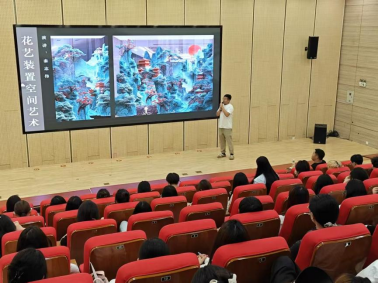 6月10日晚,图书馆1号报告厅座无虚席,现场气氛热烈。秦志伟老师以“插花·装置·空间——艺术与设计的跨界对话”为题,为建筑室内设计等相关专业师生带来了一场精彩纷呈的专题讲座。秦老师凭借深厚的艺术功底和丰富的实践经验,深入剖析了插花艺术的核心美学原理、装置艺术的创作理念及其与建筑、室内空间的深层互动关系。通过展示个人代表作品,生动诠释了如何将自然元素与人文情感融入空间设计,打造富有生命力和情感张力的艺术化环境。秦老师强调,优秀空间设计不仅要满足功能需求,更需注入艺术灵魂,提升空间品质与人文温度。
